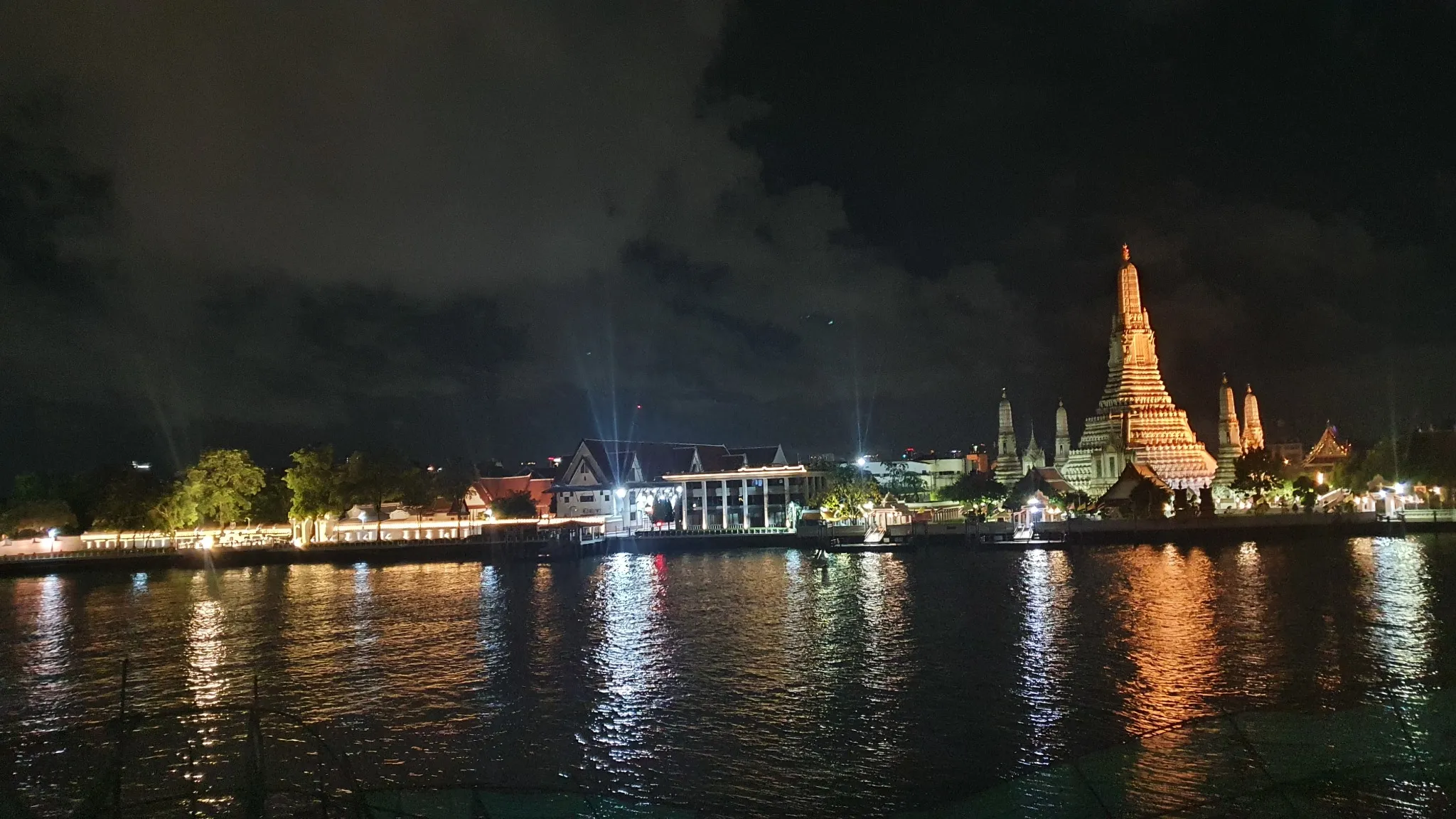차오프라야강 너머로 보이는 왓 아룬의 야경