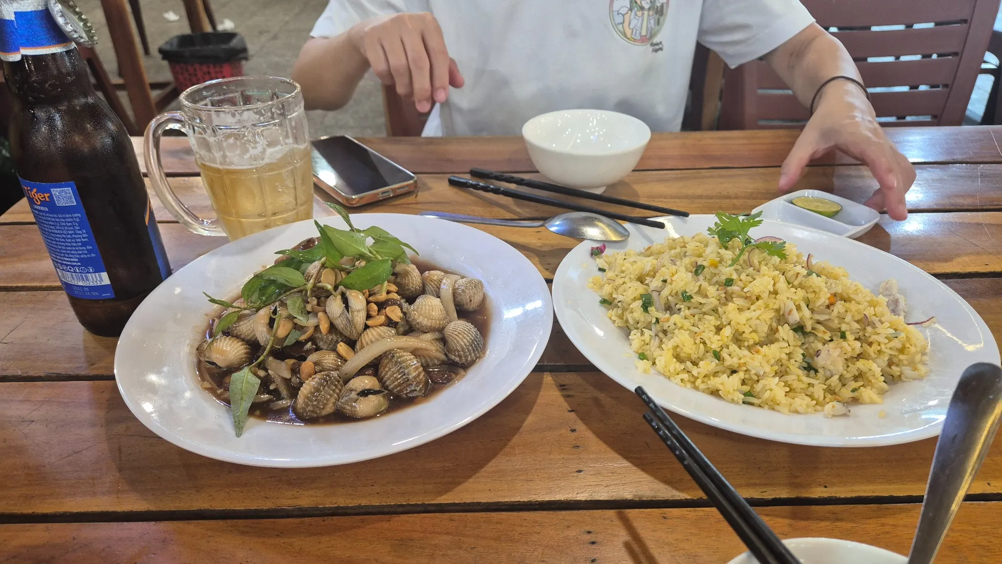 조개요리와 해산물 볶음밥 조합은 정말 환상적이었어요.
